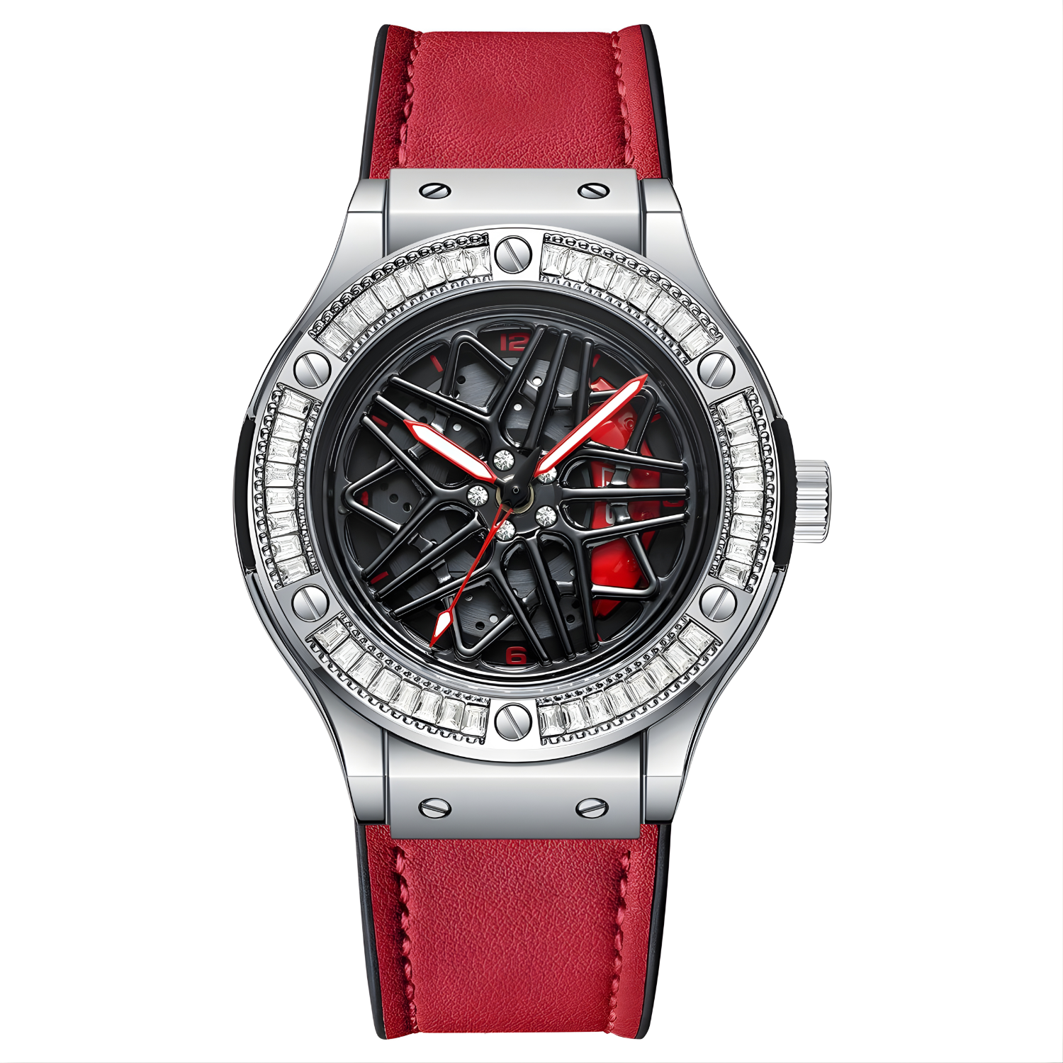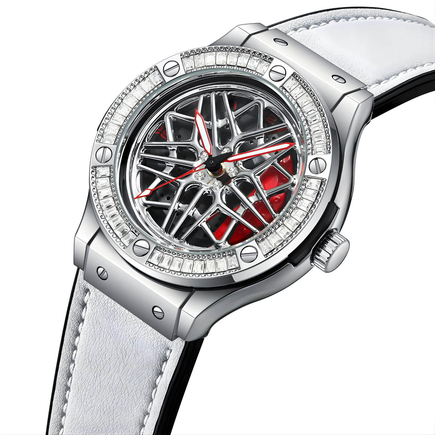 Designed for women who move with purpose, the Eikov Drift Lady blends modern femininity with the bold aesthetics of high-performance automotive design. Part of the Redline Series, this timepiece features a spinning brake-rim dial that embodies movement, confidence and refined style.